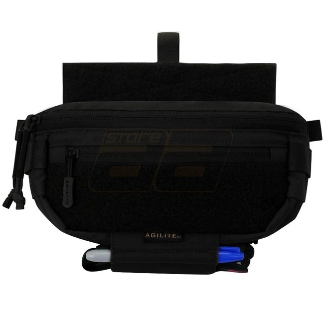 Agilite Six Pack Hanger Pouch - Schwarz: Kompakte und haltbare Hängetasche mit mehreren Befestigungsoptionen, integrierter Tourniquet-Aufbewahrung und schneller Umwandlung in eine Bauchtasche. Ideal für zusätzlichen Stauraum an einem Plattenträger. Materi