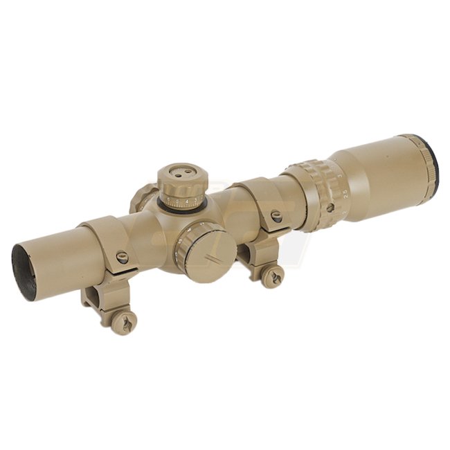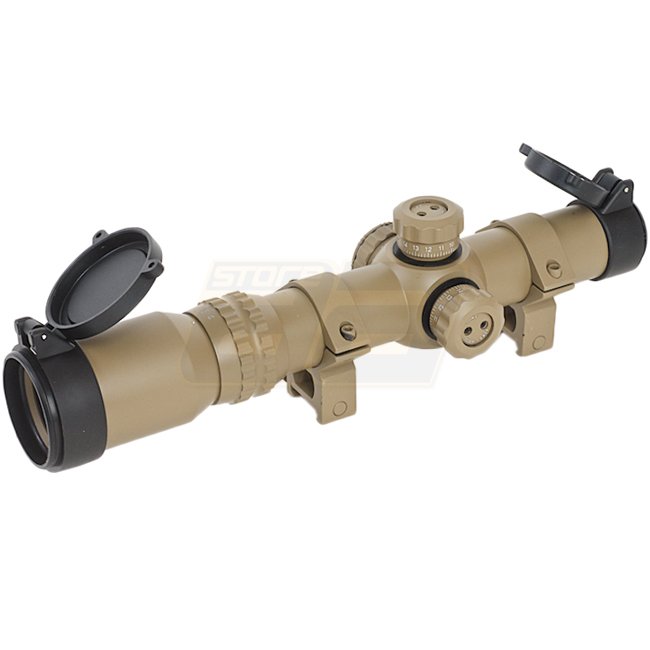 Das 1-4x24SE Tactical Scope eignet sich vor allem für kurze bis mittlere Einsatzdistanzen und weist eines der wohl beliebtesten Absehen auf: Das Mil-Dot. Das mit Punkten versehene Fadenkreuz stellt eine schnelle und sichere Zielerfassung sicher, egal in welcher Vergrösserungesstufe. Die SE-Version lässt sich zudem auch ohne Beleuchtung nutzen, wobei das Absehen mit Batterien wahlweise in Rot oder Grün beleuchtet wird.