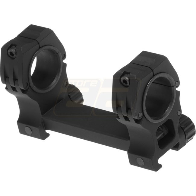 Aim-O M10 QD-L Montagesockel ist ein vielseitiges Zubehör, das sowohl für 25,4 mm als auch für 30 mm Zielfernrohre konzipiert ist. Das strapazierfähige schwarze Finish verleiht Ihrem Waffensetup einen eleganten Touch.
