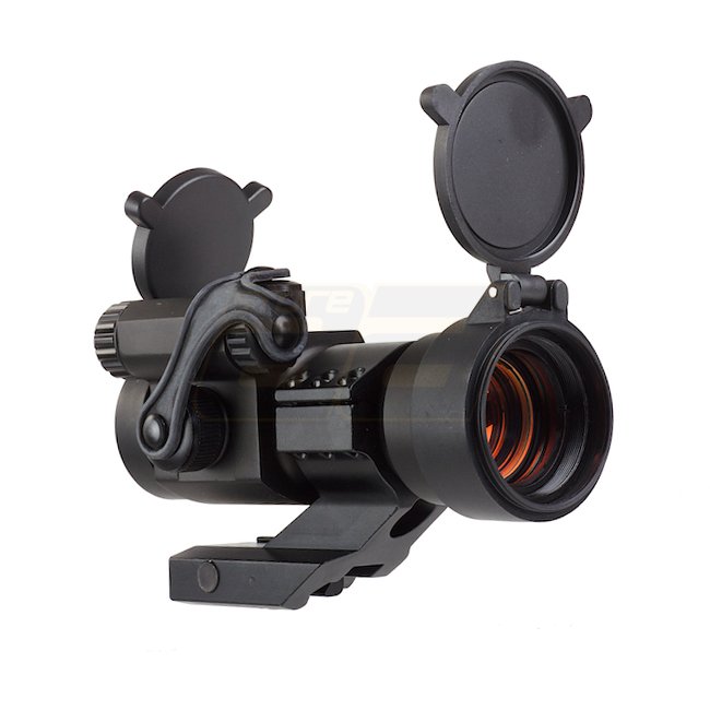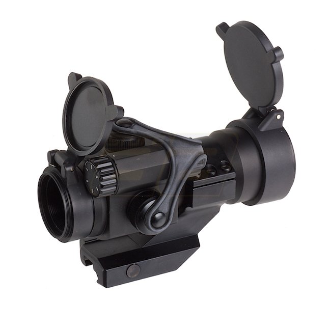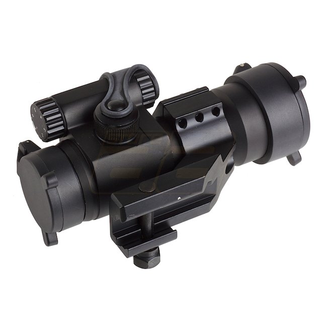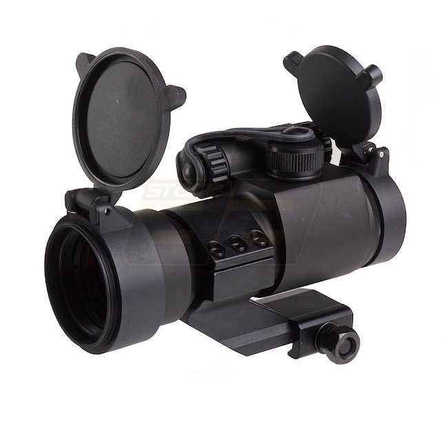 Aim-O M2 Rotpunktvisier mit Cantilever-Montage - Schwarz: Kompaktes Rotpunktvisier mit 1x Vergrößerung, 30mm Objektiv, roter und grüner Beleuchtung sowie einstellbarem Punkt-Red dot. Enthält 2x LR44 Batterien, 20mm Picatinny-Montage und hat eine Länge von