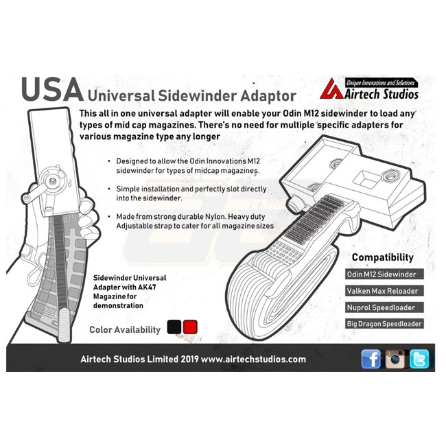 Airtech Studios Universaladapter Odin M12 - Schwarz: Verbessern Sie Ihr Airsoft-Erlebnis mit diesem schlanken und vielseitigen Adapter. Befestigen Sie mühelos Ihren Odin M12 Speedloader an jeder Airsoft-Waffe für schnelles und effizientes Nachladen im Fel
