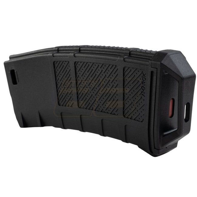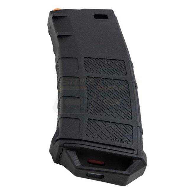 Hochwertiges Amarok Sports M4 Mid-Cap-Magazin mit einer Kapazität von 250 Schuss. Hergestellt aus strapazierfähigem Polymermaterial in auffälligen Schwarz- und Rottönen. Perfekt für M4 AEG-Plattformen.