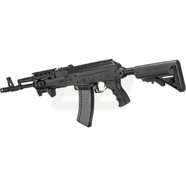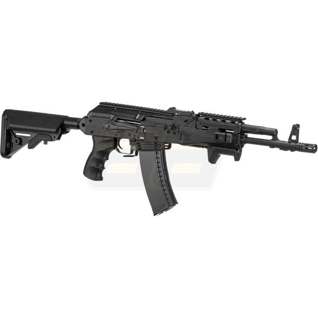APS AK74 Tactical PMC RIS Blow Back AEG - Schwarz ist ein vielseitiges Airsoft-Gewehr mit Metallgetriebe, kurzem Motor und einstellbarem Hop-Up. Es hat eine Magazin Kapazität von 550 und eine Schussreichweite von 58,99-61,74 m. Dieses AEG hat eine Mündung