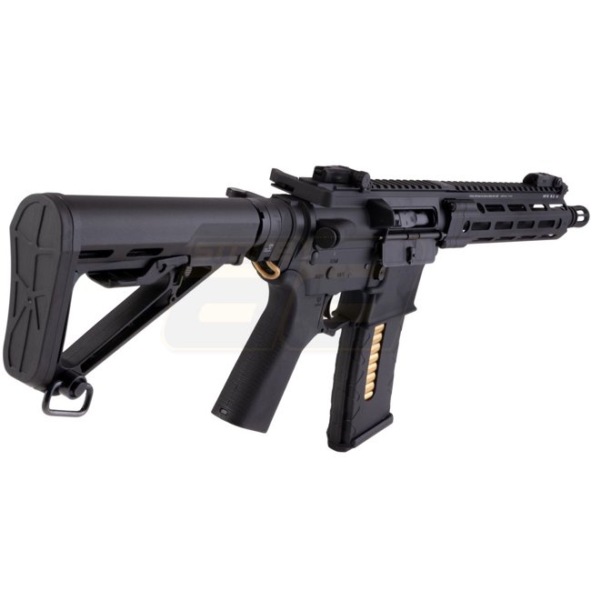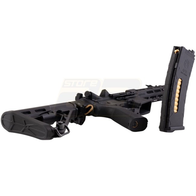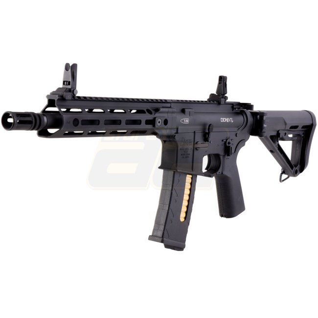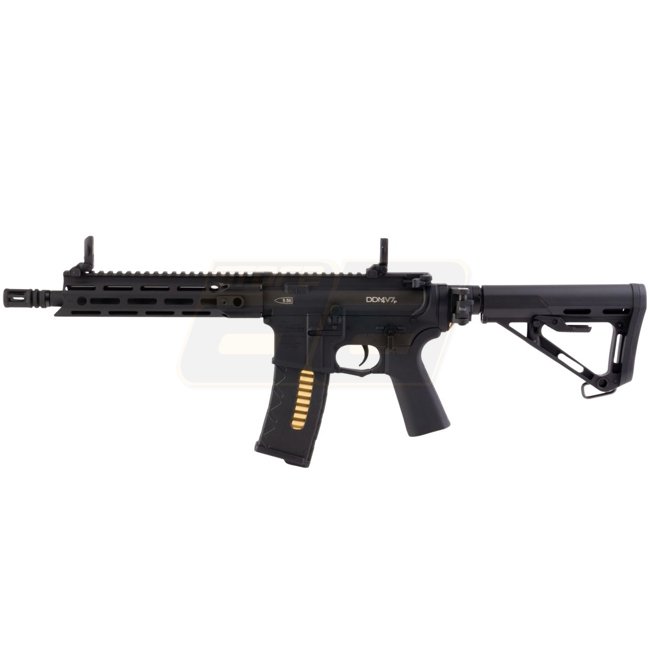 Gefertigt aus einer leichten und dennoch strapazierfähigen Aluminiumlegierung, bietet das DDM4 V7P einen 7-Zoll-Lauf und ein ergonomisches Design für verbesserte Manövrierfähigkeit. Es verfügt über das innovative G-Box System, das eine hervorragende Gas-Effizienz und zuverlässige Leistung während intensiver Spiele garantiert. Das integrierte M-LOK-Schienen-System bietet reichlich Platz für Zubehör wie Optiken, Griffe und Lampen, sodass Spieler ihre Ausrüstung individuell anpassen können.