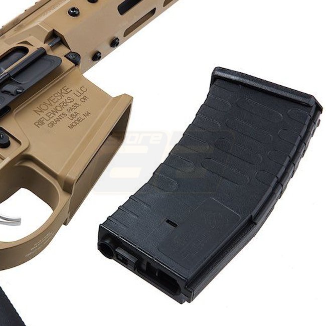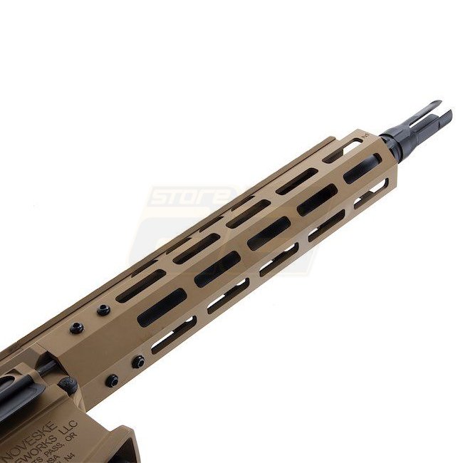 APS EMG Noveske Gen 4 Shorty AEG mit 9,75" Handguard in Dark Earth. Gearbox: Version 2, Motor: Langtyp, Material: Metall/Polymer, Magazin Kapazität: 300 (6mm), Länge: 640-720mm, Gewicht: 2450g. Mündungsenergie: 360-380 FPS, Schussmodus: Halbautomatik & Fu