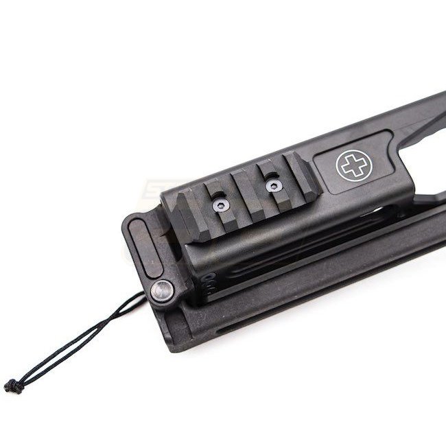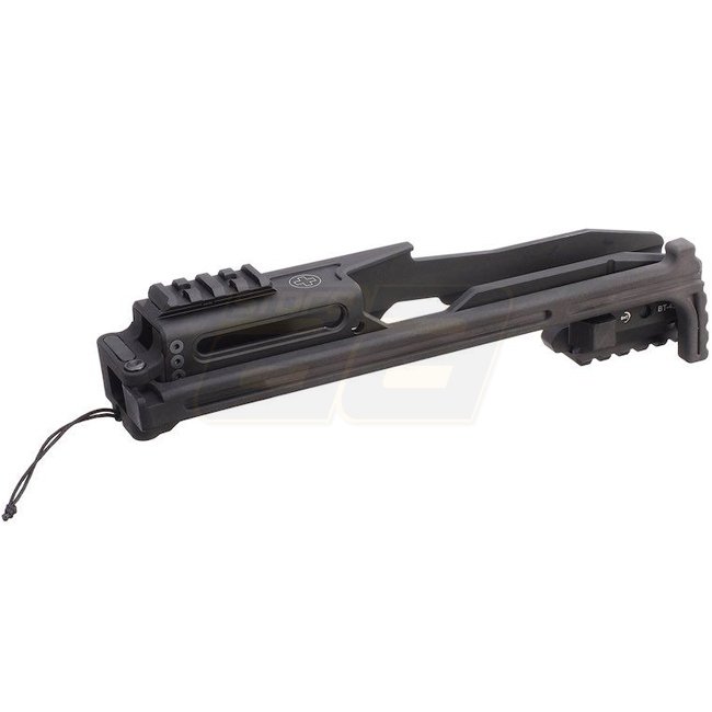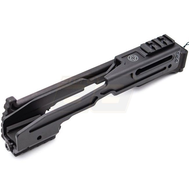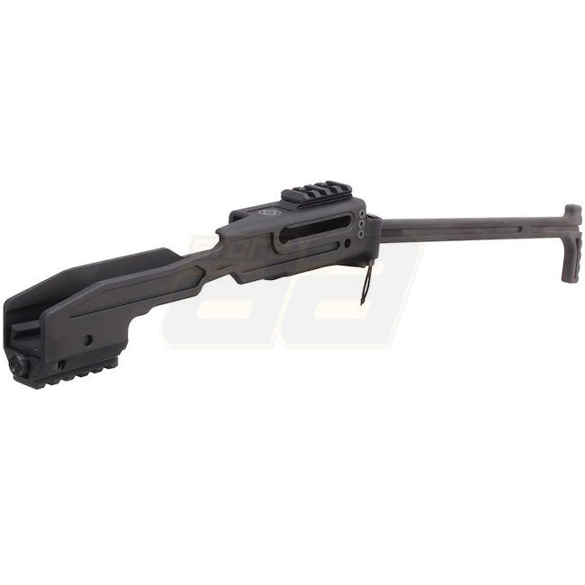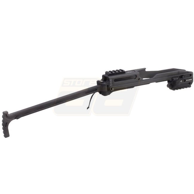 Dieses kompakte PDW-Kit verfügt über einen klappbaren Schaft, einen Lanyard sowie Picatinny Zubehörschienen oben und unten.