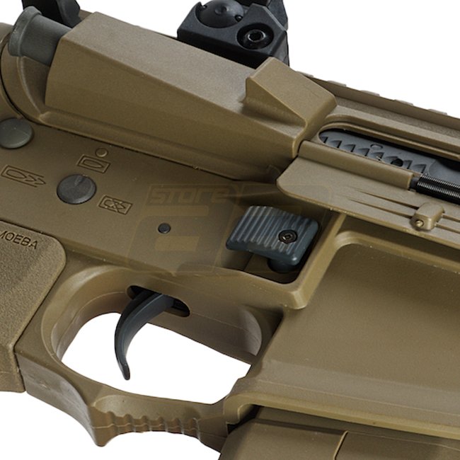 Der sogenannte Trigger Guard (Abzugsbügel) ist etwas grösser dimensioniert als bei standard M4 / M16 Gewehren damit das Bedienen des Abzugs mit Handschuhen einfacher ist. Beim Magazin handelt es sich - passend zur Waffe - um ein Amoeba Hicap mit einer integrierten, ausklappbaren Schlaufe. Anhand dieser Schlaufe lassen sich die Magazine einfach und schnell aus der Westentasche ziehen. Die Magazine sind übrigens auch separat als MidCap mit einer Kapazität von 140 BBs erhältlich (siehe "Passendes Zubehör").