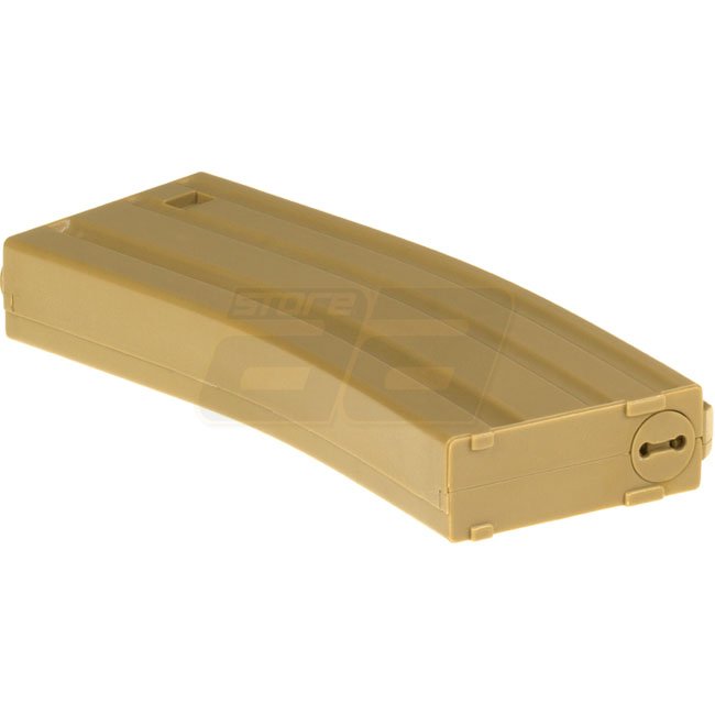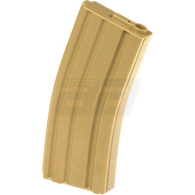 Ares M4 140rds Magazin - Tan: Hochwertiges tanfarbenes Magazin, das für Ares M4 Gewehre konzipiert ist, mit einer Kapazität von 140 Schuss für längere Schießsitzungen.