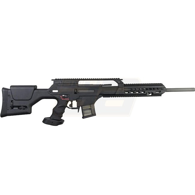 Ares SL10 Taktische AEG ECU-Version - Schwarz. Anpassbares Gearbox, MOSFET enthalten. ARES Hochdrehmomentmotor, polymerer Aufbau. 36(6mm) Magazin Kapazität. 1020mm Länge, 4200g Gewicht. Mündungsgang: 14mm- / CCW. Schussmodus: Halbautomatisch & Vollautomat