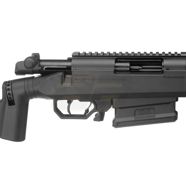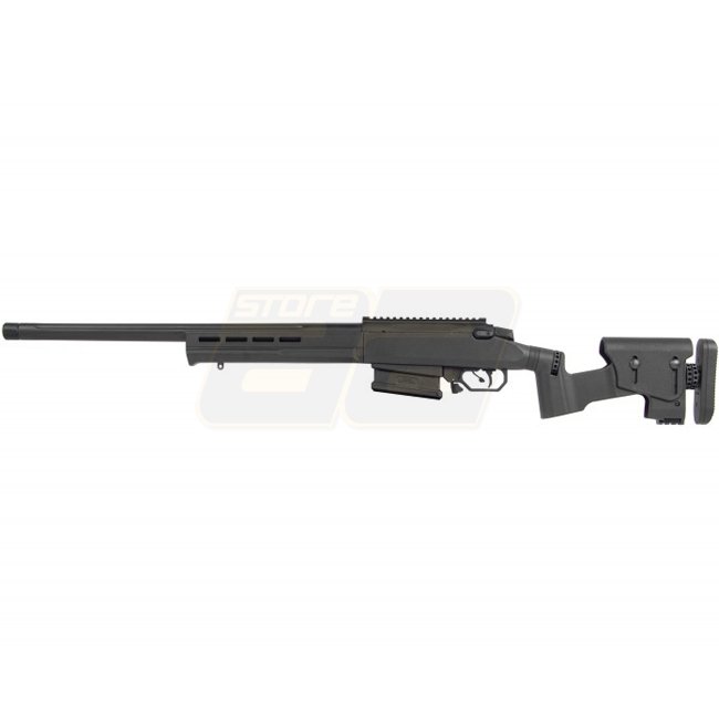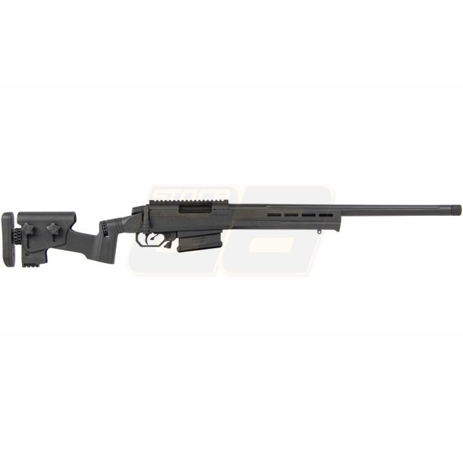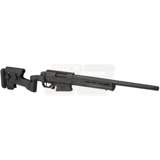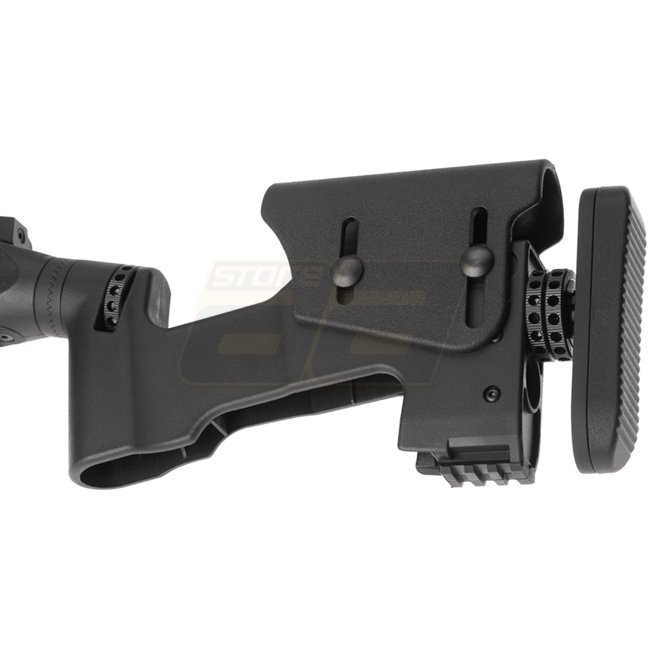 Ares Striker AST-01 Federdrucksnipergewehr in elegantem schwarzem Design, bietet hohe Präzision und Leistung für Airsoft-Enthusiasten. Ausgestattet mit einstellbarem Hop-Up, Metall-/Polymer-Konstruktion, 45-Schuss-Magazin und einer Reichweite von bis zu 5