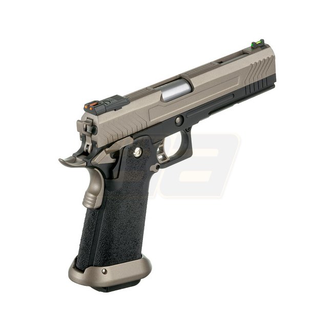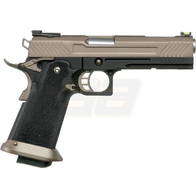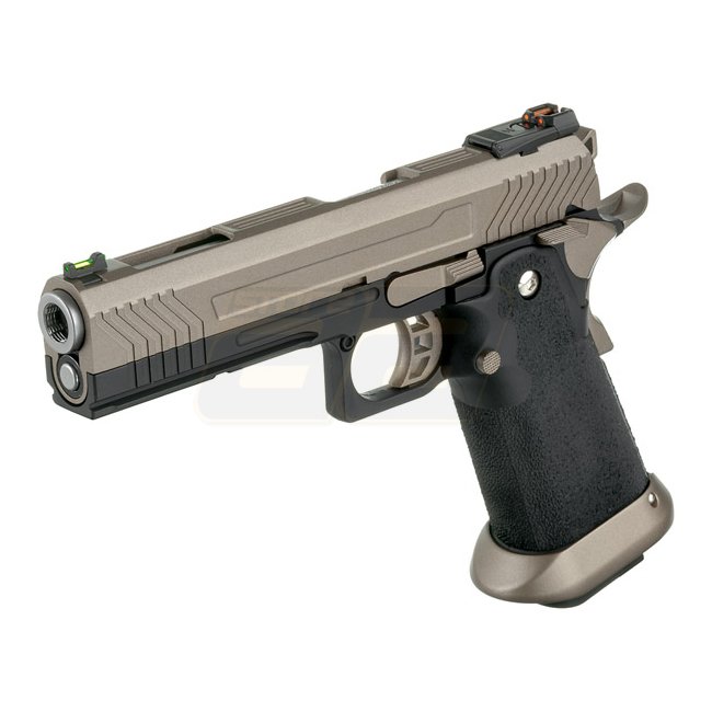Diese Ausführung mit der Modellnummer HX1103 ist auf einer Hi-Capa 5.1 aufgebaut und kommt ab Werk ausgestattet mit einem Fiber Optic Absehen; vorne in Grün, hinten in Orange. Der Schlitten dieser Ausführung ist mit diversen Fräsungen ausgestattet, die wie der Schlitten selber sowie einzelne Komponenten in Tan gehalten sind. Bereits ab Werk enthalten ist eine Montage für eine Mini Red Dot Zielhilfe. Unter dem Schlitten findet sich zudem eine Schiene für das Anbringen von weiterem Zubehör.