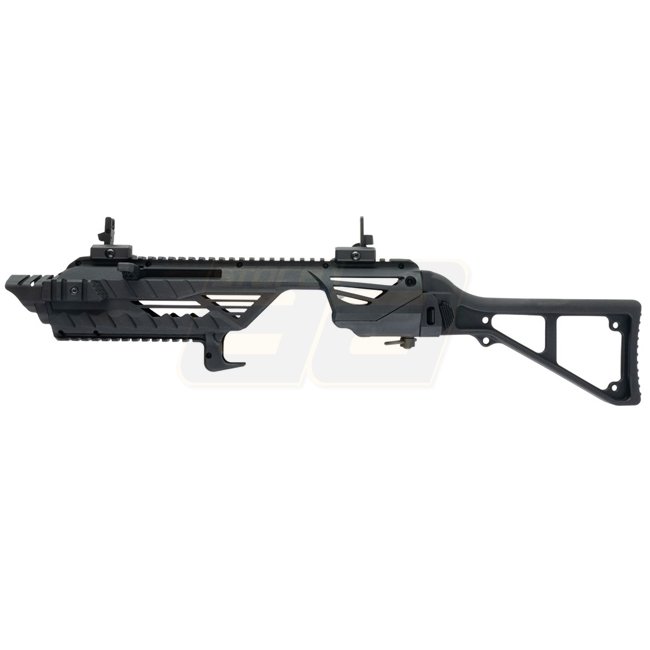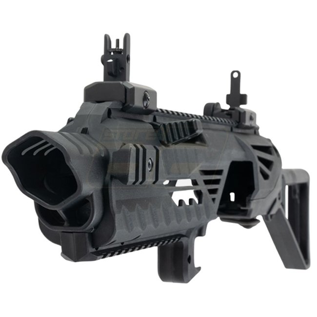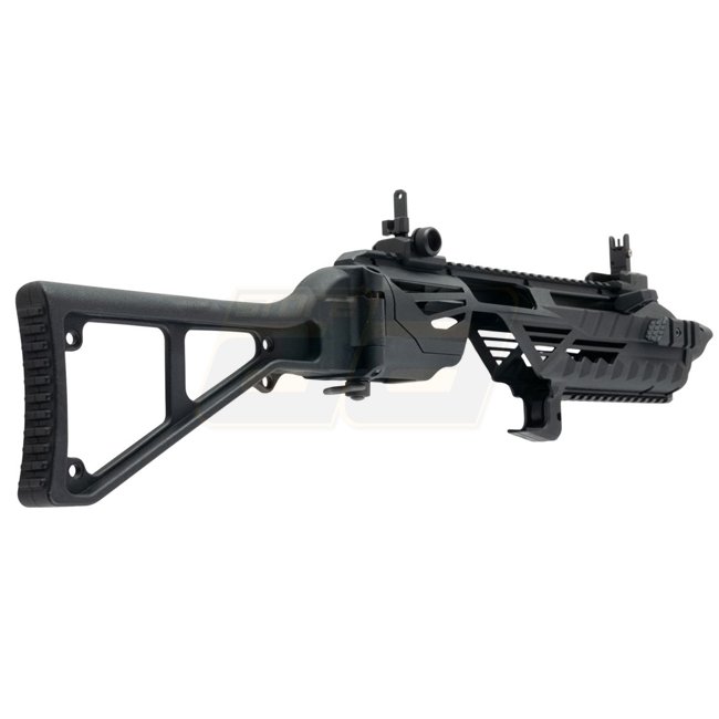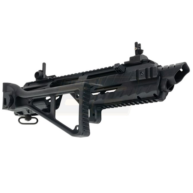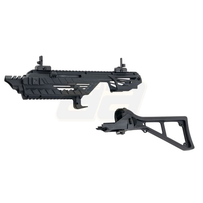 Dieses Kit verwandelt die Cybergun/WE Desert Eagle GBB‑Pistole in eine leichte, taktische Karabiner‑Plattform und verbessert Ergonomie, Stabilität und Zubehöroptionen. Gefertigt aus robustem Polymer, bietet es 20 mm Picatinny‑Schienen oben, unten und seitlich, aufklappbare Eisenvisiere, ambidextrischen Verschlussfang und klappbaren Kolben – alles ohne Änderungen an der Pistole.