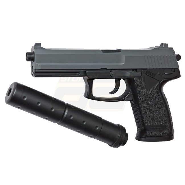 Hochwertige ASG DL60 Socom & Silencer Federdruckgewehr aus ABS-Kunststoff. 27 Schuss Magazin Kapazität, 240mm Länge und 650g Gewicht. Verfügt über eine innere Rohrlänge von 107mm, eine Reichweite von 26,07-28,81m und ein einstellbares Hop-Up. Das Paket en