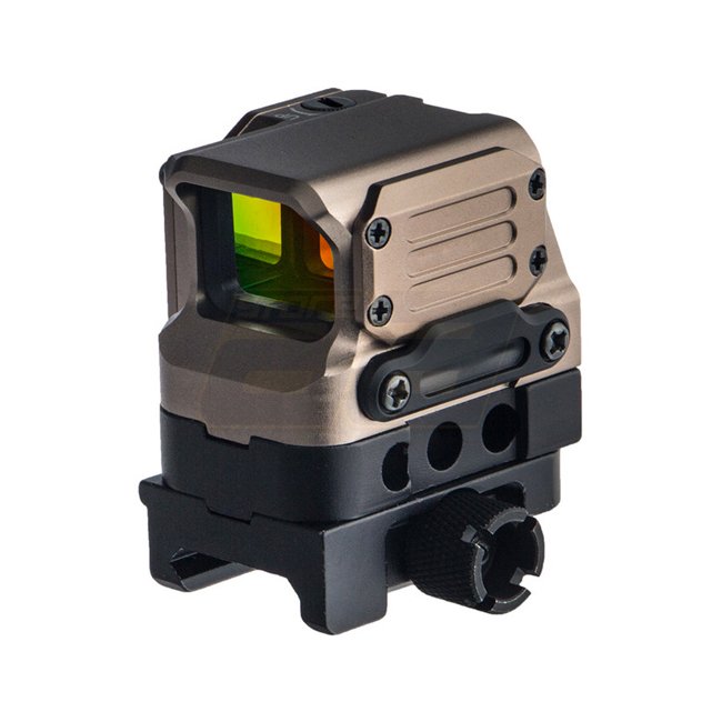 Blackcat FC-1 Rotpunktvisier in Tan-Farbe. Helligkeit einstellbar in 14 Stufen für Tag- und Nachtbetrieb. Wind- und Höhenverstellung einstellbar. Inklusive 20mm Picatinny-Medium- und Hochmontage. Hergestellt aus Aluminium. Benötigt 1x CR2032-Batterie (nic