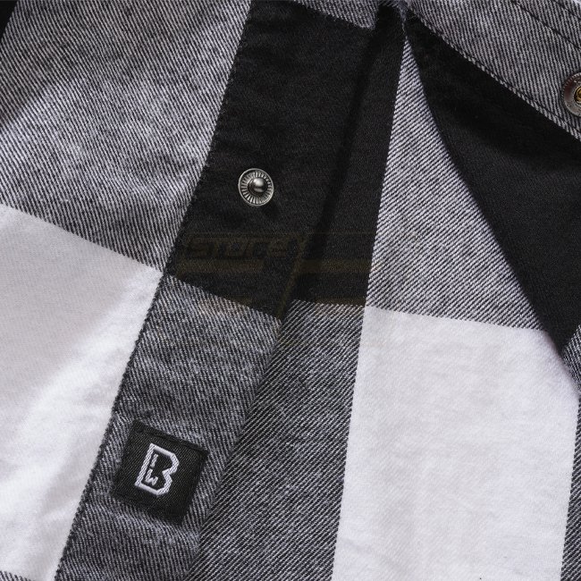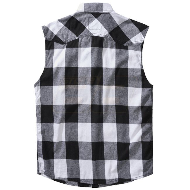 Männliches ärmelloses Karohemd mit zwei Brusttaschen und Knopfleiste im Holzfäller-Stil. Hautfreundliches Material aus 100% Baumwolle in weiß und schwarz. Bequem und stilvoll in Größe M.