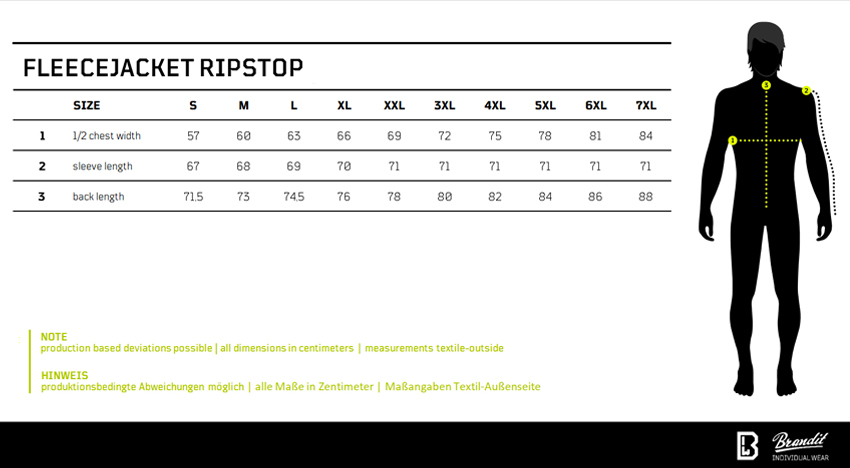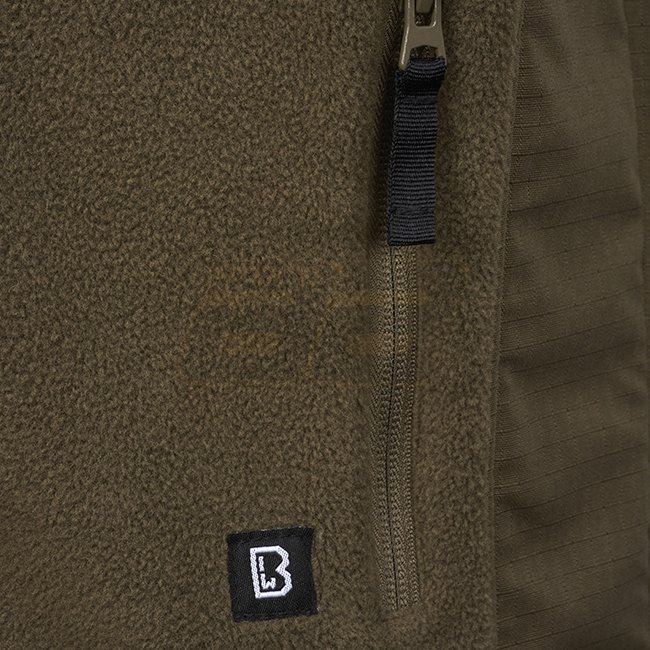 Brandit Fleecejacke Ripstop - Oliv - L. Robuste, funktionale, wasserabweisende Fleecejacke mit mehreren Taschen, Reißverschlussfächern und Klettflächen zur Anpassung. Verstellbarer Saum, längerer Rücken und Kinnschutz. Shell 1: 100% Polyester, Shell 2: