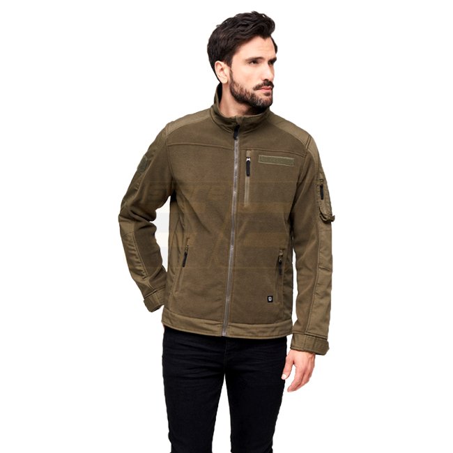Brandit Fleecejacke Ripstop - Olive - S: Warme und funktionale Fleecejacke aus wasserabweisendem Ripstop-Material, mit mehreren Taschen und verstellbaren Funktionen für eine bequeme Passform. Ideal für Aktivitäten im Freien. Außenmaterial 1: 100% Polyeste