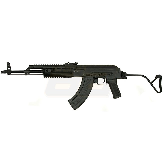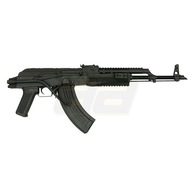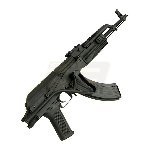 Cyma AK47 AIMS PMC BlowBack AEG: Metallkonstruktion mit Kunststoff-Handschutz und Pistolengriff, 600 Schuss Magazin-Kapazität, 697-903 mm Länge, 3275 g Gewicht. Merkmale: Version 3 Gearbox, Kurzmotor, 440 mm Innenlauf, 410-430 FPS Mündungsgeschwindigkeit