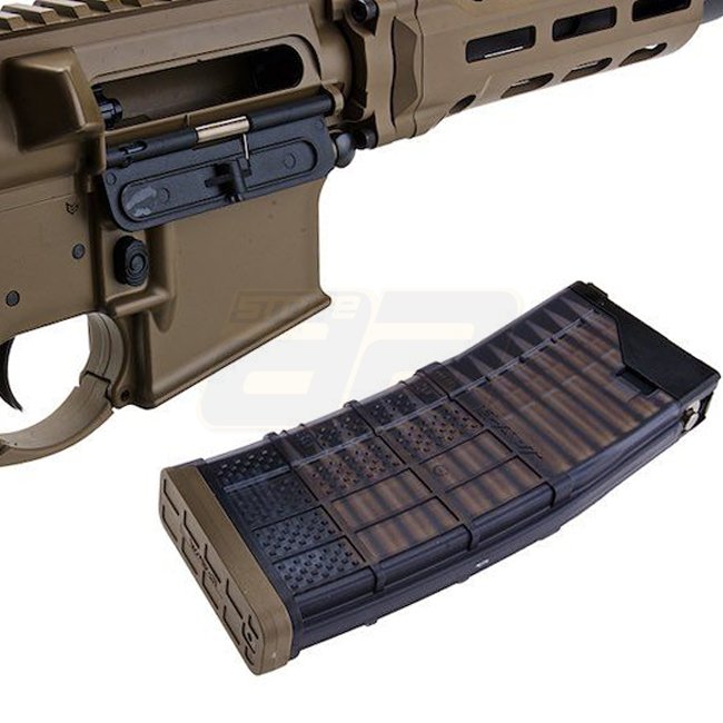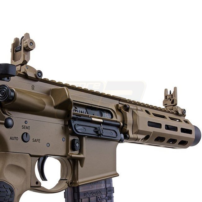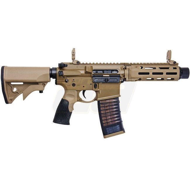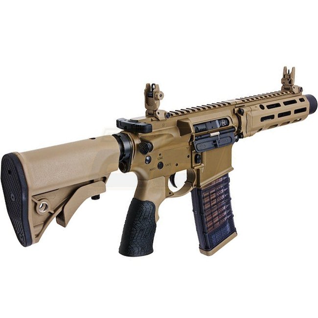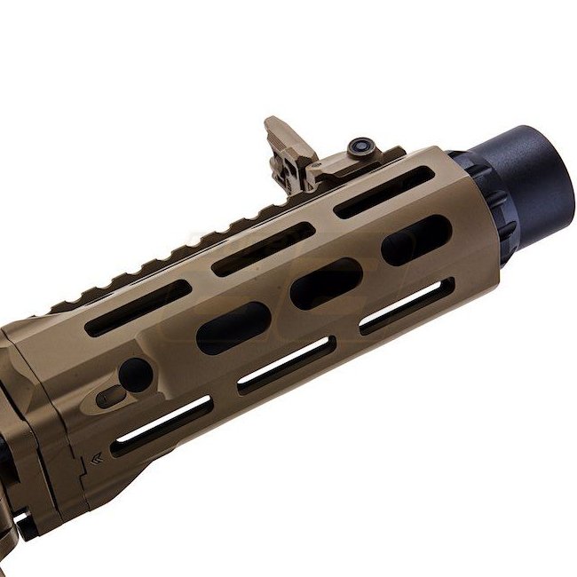 Cyma CGS EMG Daniel Defense DDM4 PDW Gas Blow Back Gewehr - Dark Earth ist eine hochqualitative Airsoft-Waffe mit einem Metall/Polymer-Pistolengriff, einem 30-Schuss-Magazin, einstellbarem Hop-Up, halbautomatischen & vollautomatischen Schussmodi und einer