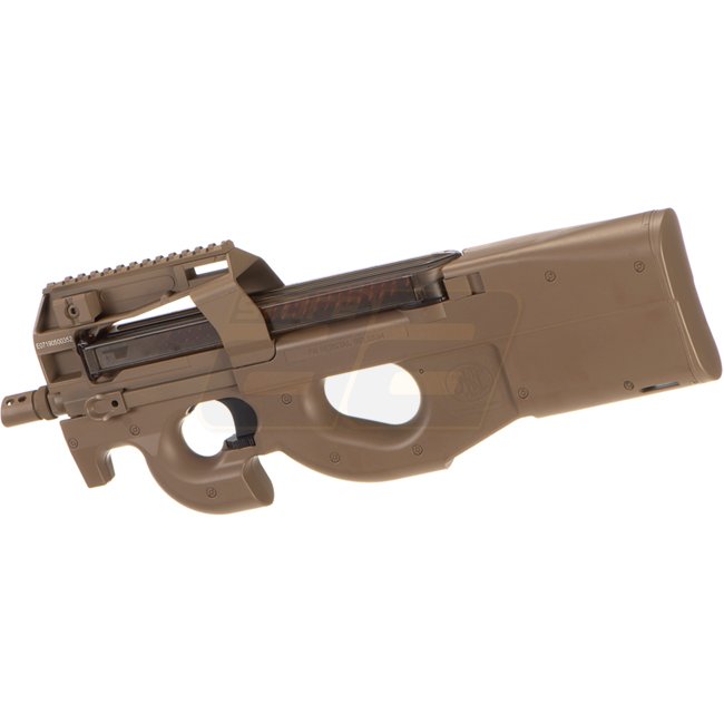 Cyma FN P90 Tactical AEG - Tan: Hochwertiges Airsoft-Gewehr mit Version 6 Gearbox und einstellbarem Hop Up. Langtypmotor, 68-Schuss-Magazin, 500 mm Länge und 2100 g Gewicht. Semi- und Vollautomatik-Schussmodi, 400-420 FPS Geschwindigkeit, Schussreichweite