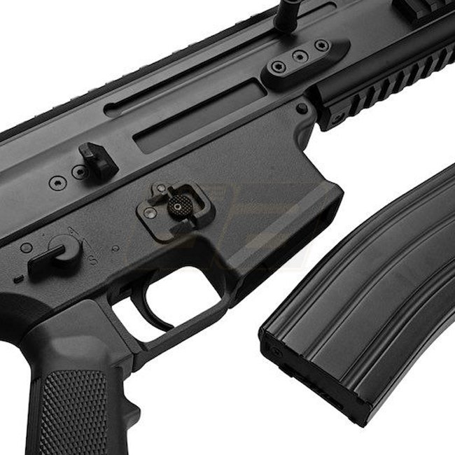 Cyma FN SCAR-L ABS Version AEG - Schwarz, mit Version 2 Gearbox, MOSFET, maßgeschneidertem Motor, Metall/Polymer-Konstruktion, 300-Runden-Magazin, 805 mm Länge, 2060 g Gewicht, 300 mm Innenlauf-Länge, 14 mm Mündungsgewinde, 370-390 FPS Mündungsenergie, Se