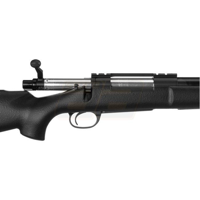Cyma M24 SWS CM702 Feder-Scharfschützengewehr in Schwarz mit einer Magazin-Kapazität von 30 Schuss, 1100 mm Länge und 2800 g Gewicht. Entworfen für den Einzelschuss-Schießstil mit verstellbarem Hop-Up. Das Paket beinhaltet Gewehr und Magazin.