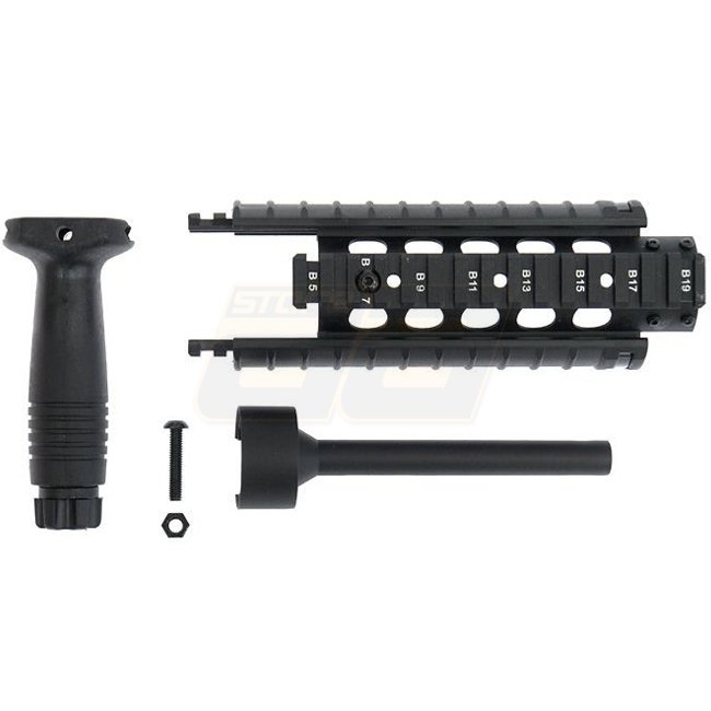 Verbessern Sie Ihre Feuerkraft mit dem Cyma MP5 RIS Set. Enthält RIS, Schienenabdeckungen und einen vertikalen Vordergriff, um Ihr Schießerlebnis zu verbessern.