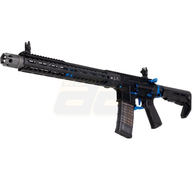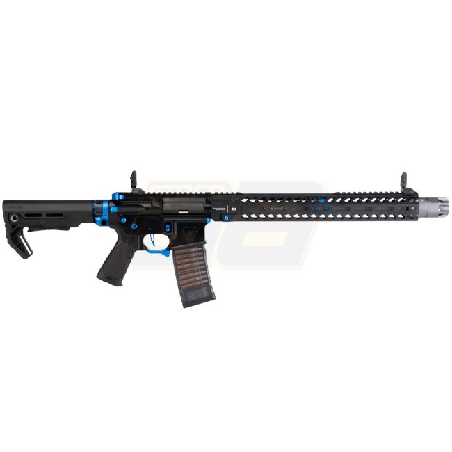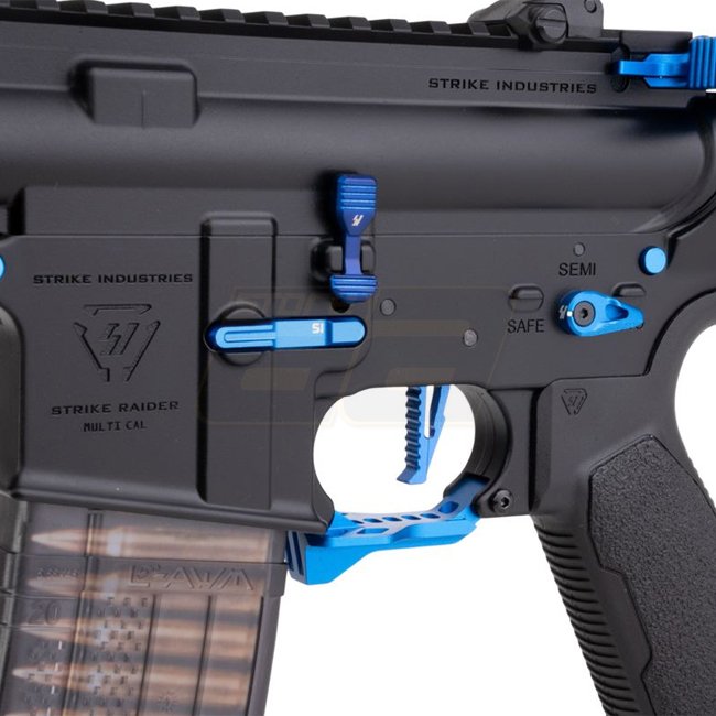 Das Cyma Strike Industries AR Strike Raider Gas Blow Back Rifle 15,5 Zoll in Schwarz / Blau ist ein hochwertiges AR-15 mit lizenziertem Strike Industries Zubehör.