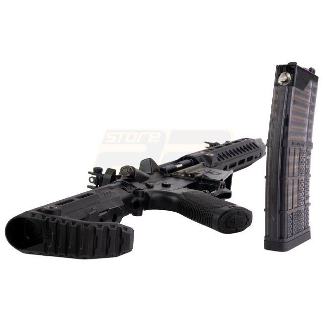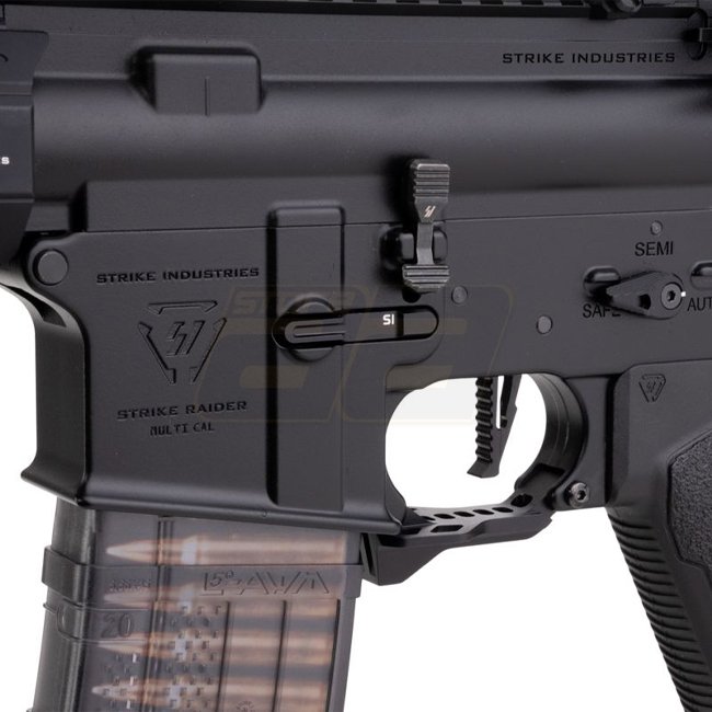 Dieses Cyma Strike Industries AR Strike Raider SBR Gas Blow Back Gewehr verfügt über vollständig lizenzierte Strike Industries-Ausrüstung, einschließlich eines 10-Zoll Gridlok Lite Handguards, SI Viper Stock Mod 1 und SI Enhanced Pistol Grip.