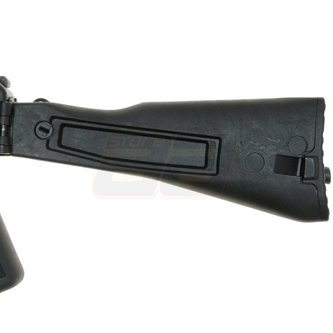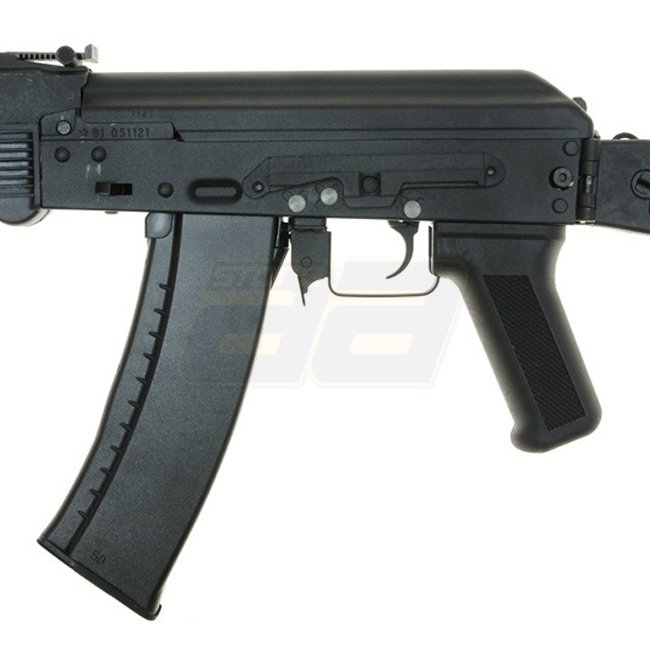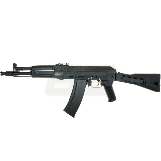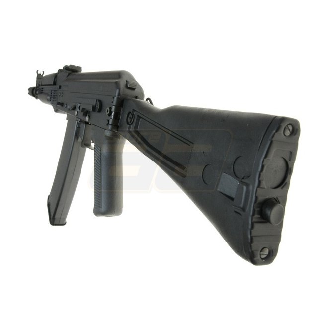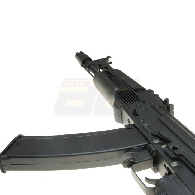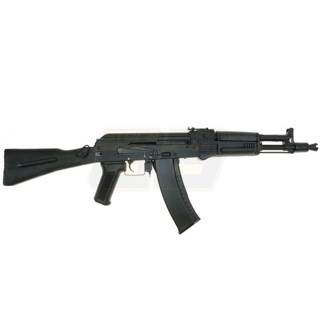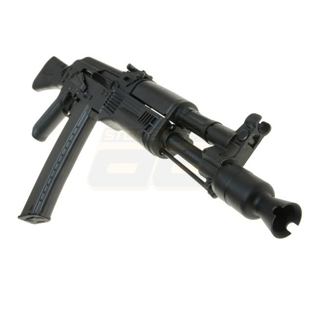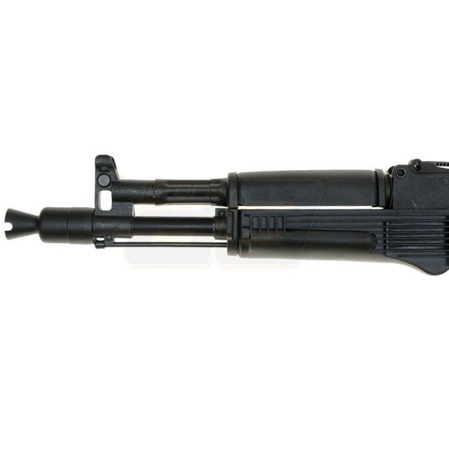 Das Dboys AK105 AEG verfügt über ein Metallgehäuse, MOSFET, einen Kurztypmotor und eine Magazin kapazität von 450 Schuss. Es hat eine Länge von 605 / 835mm, ein Gewicht von 3038g und eine Innenlauf Länge von 370mm. Die Waffe ist mit einem einstellbaren Ho