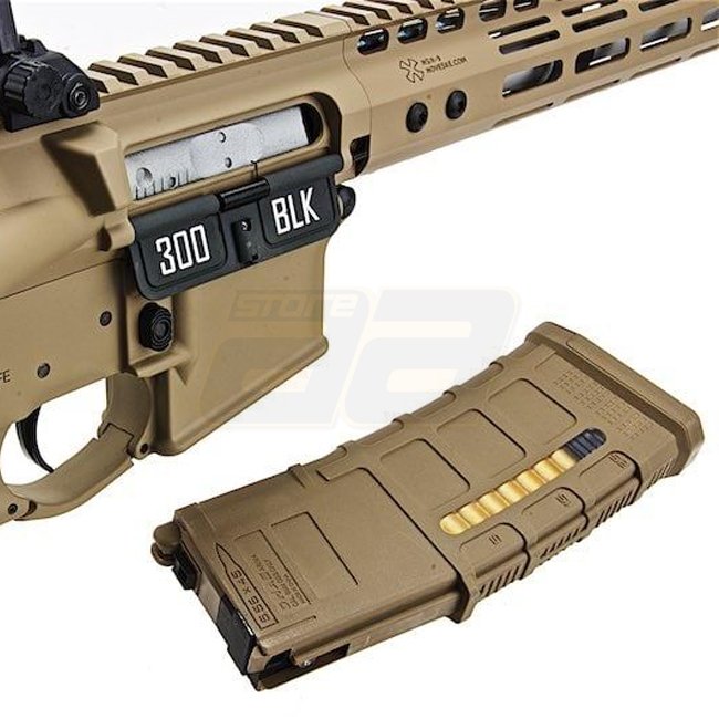 Double Eagle EMG Noveske N4 NWS Gas Blow Back Gewehr - Dunkel Erde. Metall-/Polymer-Bauweise, 30-Schuss Magazin, 710mm Länge, 2750g Gewicht, 280mm Innenlauf, 14mm- / CCW Mündungsgewinde, 320-340 FPS Mündungsgeschwindigkeit, Halbautomatik- und Vollautomati