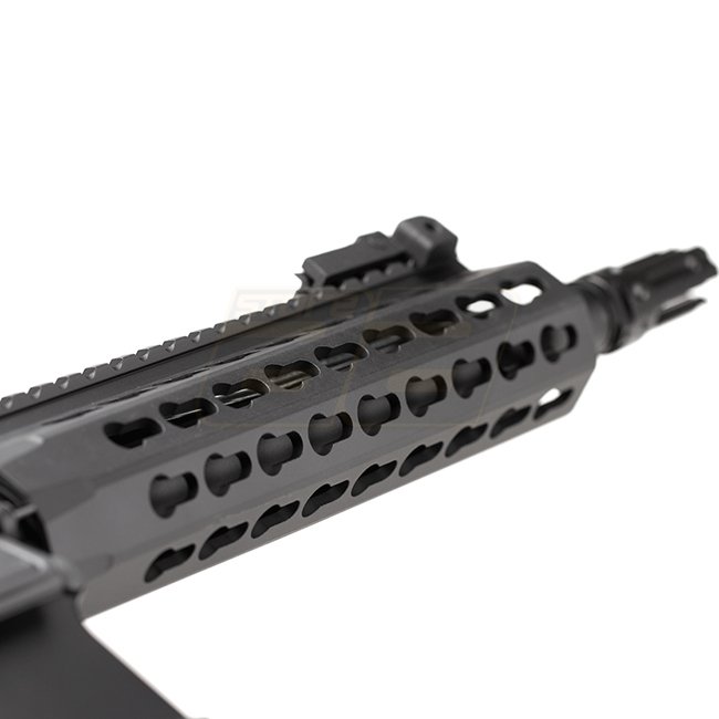 E&C M4 Defender 8.5 Inch QR 1.0 EGV AEG - Schwarz ist ein vielseitiges Airsoft-Gewehr, das Leistung und Haltbarkeit vereint. Es verfügt über ein Metallgetriebe, einen Langmotor und eine Magazin Kapazität von 300 Schuss. Mit einer Mündungsgeschwindigkeit v