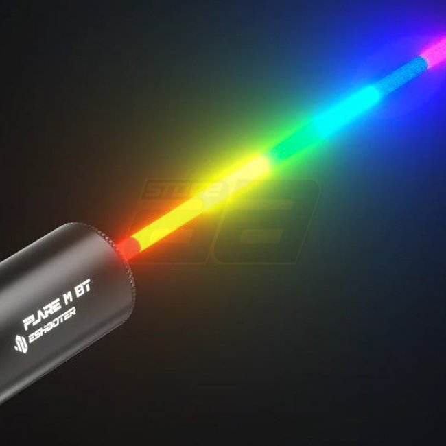 Die Eshooter Flare BT M Tracer Einheit in Schwarz bietet schnelles Laden, Bluetooth-Konnektivität für 10 RGB-Farben und +3 Modi (Tracer, Muzzle Flash und Tracer mit Muzzle Flash). Gewicht 50g, Länge 55mm.