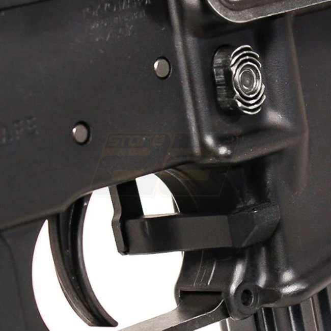 Upgraden Sie Ihr Marui MWS GBBR mit diesem maßgeschneiderten Ambi Bolt Catch in mattschwarzer Ausführung von First Factory.