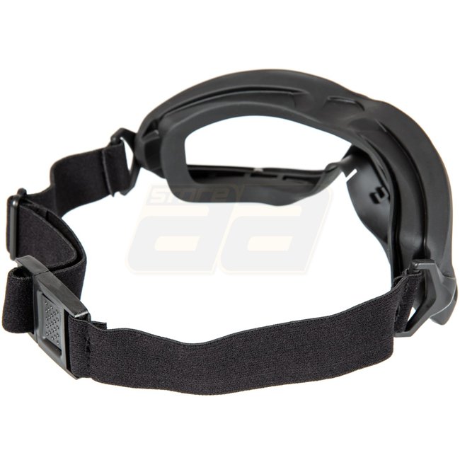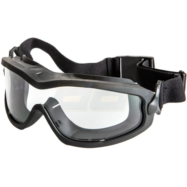 Low-Profile taktische Schutzbrille aus strapazierfähigem Kunststoff und Gummi. Die Verwendung eines Gummikragens ermöglicht einen größeren Abstand zum Gesicht, wodurch die Luftzirkulation verbessert wird. Zusätzlich zum Standardgurt wird die Schutzbrille mit einem Set geliefert, mit dem sie an einem Helm befestigt werden kann.