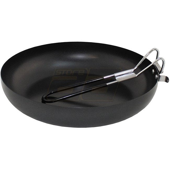 Kompakte FoxOutdoor Bratpfanne, faltbares Design mit gummierter Griff. Verfügt über eine Antihaftbeschichtung für einfaches Kochen. Nicht für offenes Feuer geeignet. Abmessungen: 24 x 5 cm, Gewicht: 460 g. Hergestellt aus 100% Stahl.