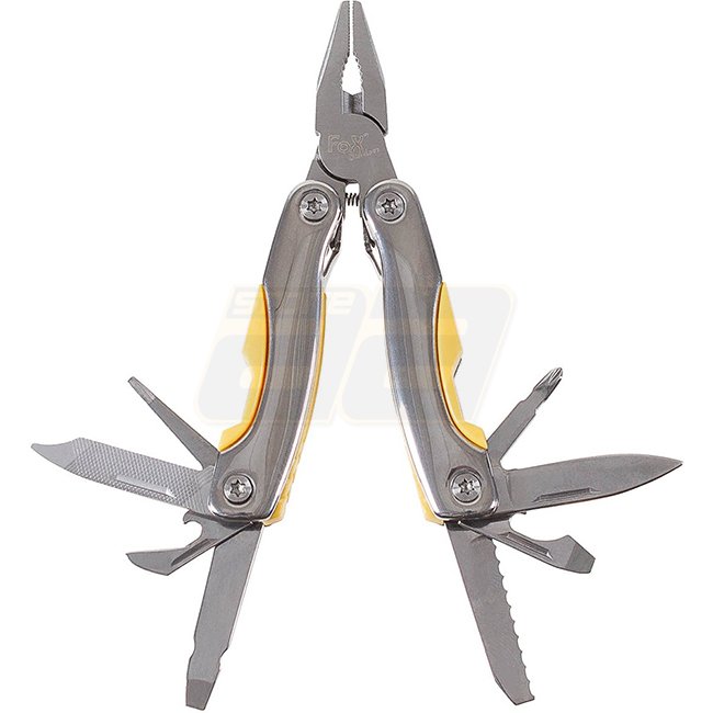 FoxOutdoor Pocket Tool Small - Silber: Kompaktes und vielseitiges 9-teiliges Multifunktionswerkzeug mit Messer, Säge, Zange, Feile, Schraubendrehern, Öffner, Reibahle und mehr. Wird mit einem Etui für einfachen Transport geliefert. Abmessungen: 7 x 3,2 x