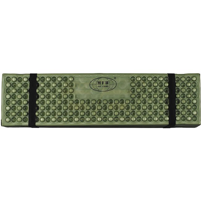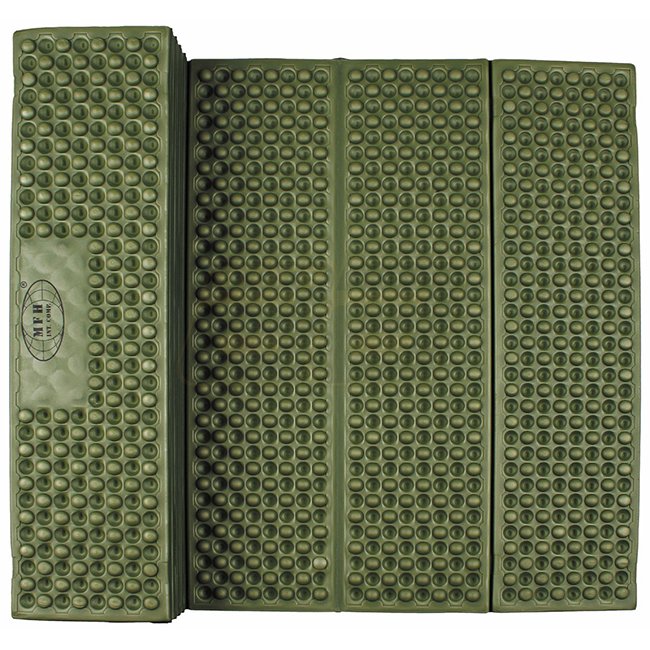 Faltbare Wärmedämmung in olivgrün mit robustem Schaumstoff, rutschfester Isolierstruktur, 2 abnehmbaren elastischen Riemen. Packungsgröße: 58 x 15 x 11 cm, Abmessungen: 180 x 58 x 1 cm, Gewicht: 290g. Material: 100% Ethylenvinylacetat (EVA).