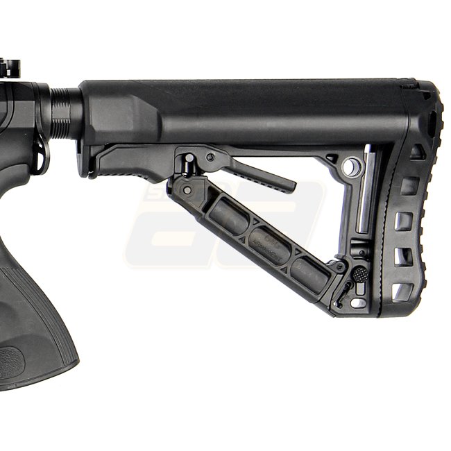 Die GC16 WILD HOG Modelle gibt es in vier unterschiedlichen Längen: 7, 9, 12 und 13.5 Inch. Alle drei Versionen sind mit einem schlanken Handschutz ausgestattet, welcher über das KeyMod System zur Montage von Schienen und Zubehör verfügt. Kimme und Korn sind klappbar und können bei Bedarf durch den Anwender auch ganz abgenommen werden da schraubbar. Beim Schaft kommt ein neues Modell mit dicker Gummi Abdeckung am Ende sowie ausklappbarem Batteriefach zur Anwendung. Er lässt sich einhändig in sechs Stufen verstellen und in der jeweiligen Position fest durch einen Hebel arretieren. Der Pistolengriff ist äusserst ergonomisch und stellt durch die Fingermulden sowie die nach hinten hochgezogene Bauweise einen optimalen Halt sicher. Die ab Werk verbaute Riemenöse findet sich hier beidseitig – gleiches gilt für den Magazinauswurf sowie den Feuerwahlhebel - womit die WILD HOG-Modelle auch für Linkshänder ausgelegt sind. Das spezielle Magazin ist sehr griffig und lässt sich dadurch auch in hektischen Situationen gut aus einer Westentasche ziehen und einsetzen. Beim Gehäuse hat sich G&G ein modernes Design einfallen lassen welches sich klar von herkömmlichen M4 Bodies unterscheidet und dadurch der WILD HOG-Serie eine sehr spezielle Optik verleiht.