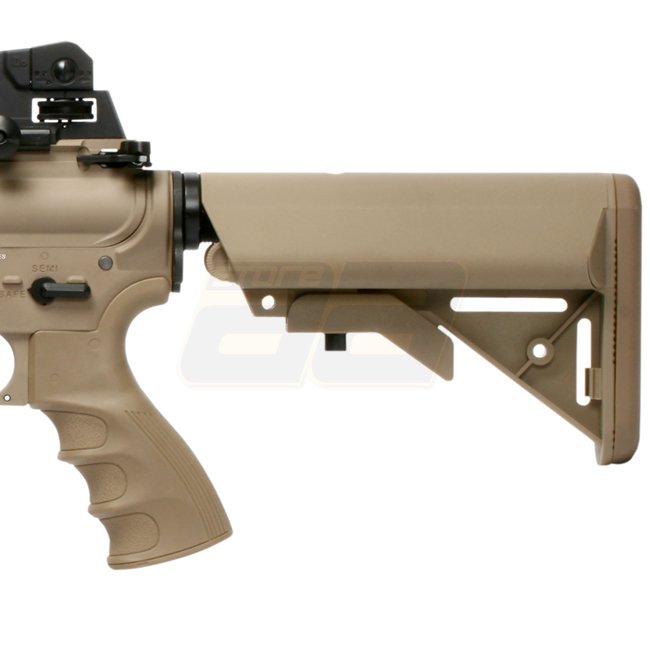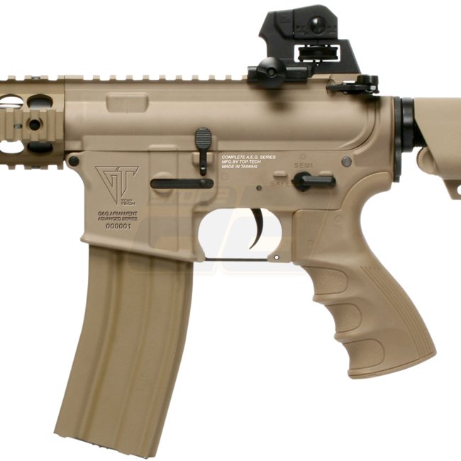 G&G TR15 Raider XL Desert AEG, Metallkonstruktion, 450 Schuss Magazin, 780-870 mm Länge, 2900 g Gewicht, 357 mm innerer Lauf, 350-370 FPS Mündungsgeschwindigkeit, Halb- und Vollautomatik, einstellbares Hop-Up, kleiner Tamiya-Stecker, beinhaltet Waffe & Ma