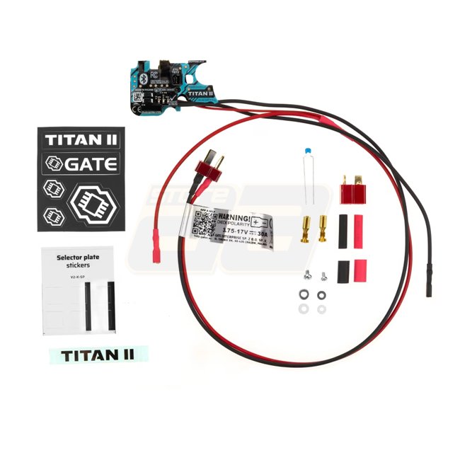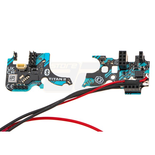 Die Gate TITAN II BT Expert V2 GB AEG mit rückseitiger Verkabelung ist eine fortschrittliche Electronic Trigger Unit (ETU), die mit Bluetooth 5.2-Technologie für die Echtzeitsteuerung, einem optischen Trigger-Sensor für Präzision und dem erstmals verwende