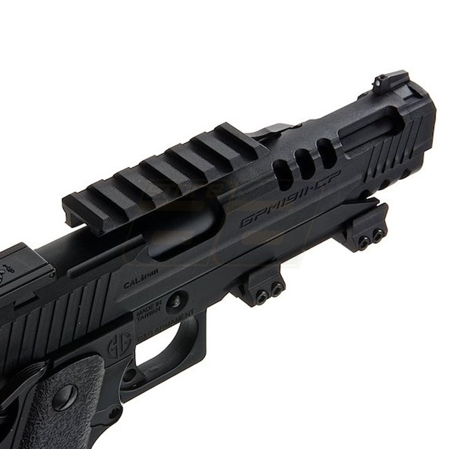 G&G GPM1911 CP Scope Mount in schwarzer Farbe. Hochwertige und langlebige Montage, die zum Befestigen von Zielfernrohren an Ihrer 1911-Pistole entwickelt wurde. Einfach zu installieren und verbessert die Schießgenauigkeit. Perfektes Zubehör für taktische