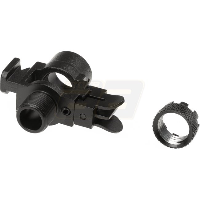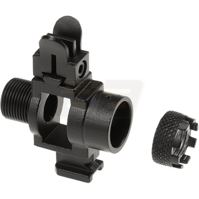 G&G GR14/EBR-L Schalldämpferadapter in schwarzer Ausführung. Kompatibel mit 14mm CCW-Gewinden zum Anbringen von Schalldämpfern und Suppressoren. Verbessert das Aussehen und die Funktionalität Ihrer Airsoft-Waffe.
