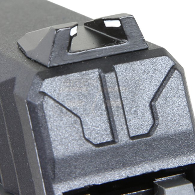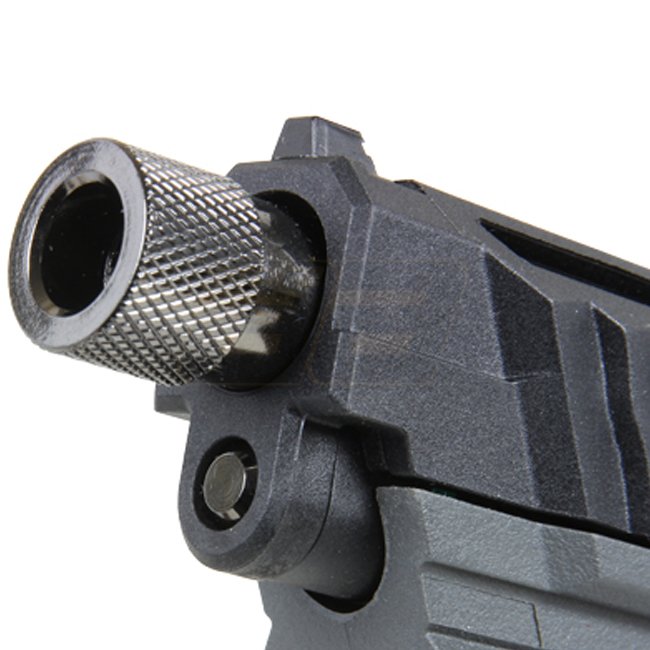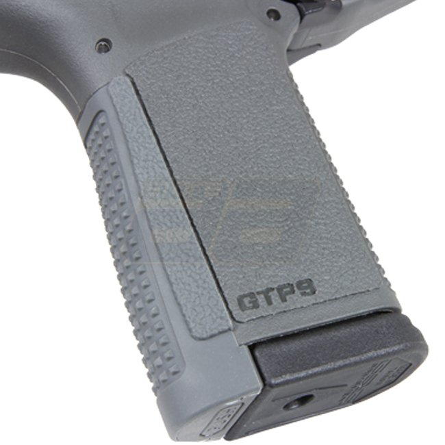 G&G GTP9 Gas Blow Back Pistole in elegantem Schwarz/Grau. Polymergriff und -schlitten kombiniert mit Metallzubehör. Merkmale: 22-Schuss-Magazin, 219 mm Länge, 750 g Gewicht und 102 mm Innenlauf Länge. Die Mündungsgeschwindigkeit reicht von 310-330 FPS. Ha