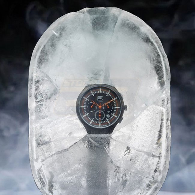 Glock Uhr Chrono Set GWC0003 - Stylische und langlebige Uhr mit Saphirglas, Solaruhrwerk und einem vollständigen Titan-Gehäuse. Wasserdicht bis zu 10 ATM mit einem eleganten matten schwarzen Mesh-Armband und einem zusätzlichen orangefarbenen Silikonarmban
