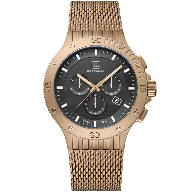 Diese Uhr vereint Handwerkskunst und zeitlose Eleganz. Das Edelstahlgehäuse in Coyote-Farbe passt perfekt zum farblich abgestimmten Mesh-Armband. Das schwarze Zifferblatt, beleuchtet durch Zeiger und Indizes mit Schweizer Super-LumiNova® und geschützt durch Saphirglas, arbeitet mit der Präzision eines zuverlässigen Schweizer Uhrwerks. Mit einer Wasserdichtigkeit von 20 ATM und einer Chronographenfunktion vereint sie Funktionalität und Stil.