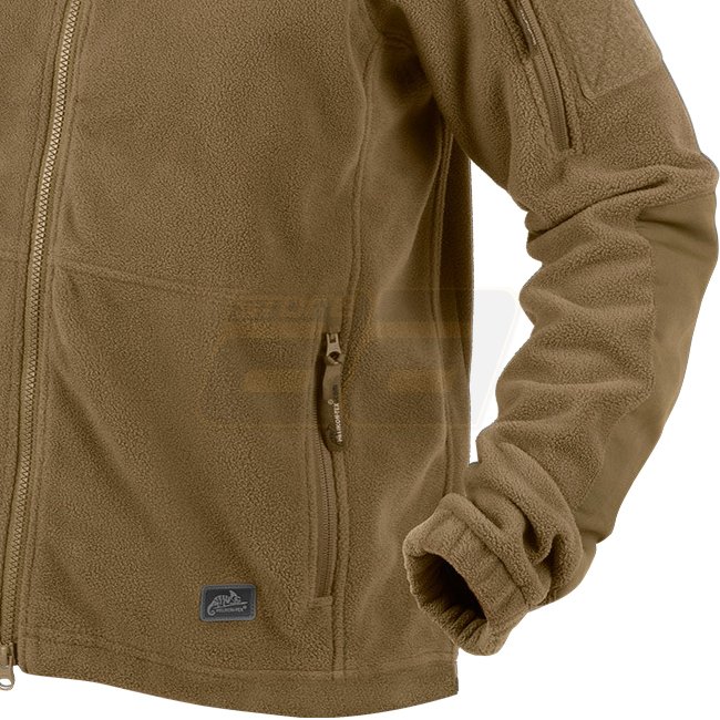 Cumulus Heavy Fleece Jacket - Coyote - 2XL. Polyester-Material, 750g Gewicht. Zwei-Wege-Hauptreißverschluss, externe Reißverschlusstaschen, interne Brusttaschen, Klettverschlusspanels an den Ärmeln, visierter Kapuze, elastische Ärmelbündchen, Nylonverstär