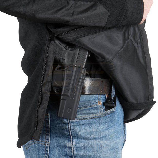 "Helikon-Tex Defender Fleece Jacket" - Schwarz - M ist eine Dienstfleecejacke, die ausschließlich für Strafverfolgungsbehörden und Sicherheitskräfte konzipiert ist. Zu den Funktionen gehören Schulter- und Ellbogenverstärkungen, drei versteckbare ID-Panels