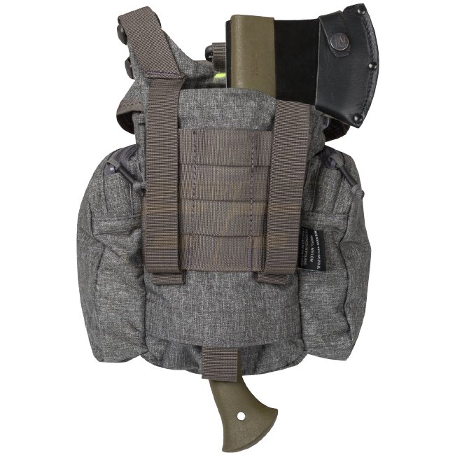 • Integrierte, mit Klettverschluss verstellbare Scheide für Messer/Axt/Säge