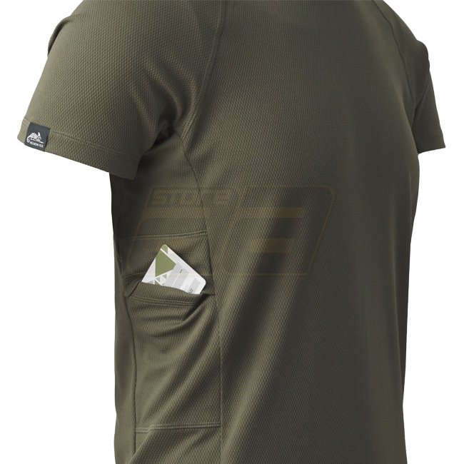 Helikon-Tex Funktions-T-Shirt Schnell trocknend in Olivgrün 2XL. Polyesterstoff für Atmungsaktivität und schnelles Trocknen. Anatomischer Schnitt mit flachen Nähten, zwei Taschen für Karten/Schlüssel. Schnell trocknend, elastisches Material. Gewicht: 213g